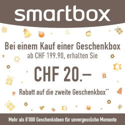 Smartbox ist ein Online-Shop, der über ein ganz besonderes Sortiment verfügt und seine Kunden mit ganz besonderen Erlebnissen glücklich macht. Smartbox.ch richtet sich in erster Linie an alle Romantiker, denn entspannte Traumreisen und Wellnesserlebnisse können Sie hier zuhauf buchen. Wer seinem Liebsten zu Weihnachten oder zum Geburtstag eine ganz besondere Freude machen möchte, wird eine schier unerschöpfliche Vielfalt an Erlebnisboxen finden.Doch damit hört das Angebot von Smartbox Discount noch längst nicht auf: Insgesamt sage und schreibe 19‘000 Erlebnisse finden sich in der riesigen Auswahl bei smartbox.ch. Wie umfangreich das Angebot auf der Webpräsenz ist, erkennen Sie bereits gut anhand der nachfolgenden Kategorien: Kurzurlaub, Wellness, Sport & Abenteuer, Gastronomie, Lifestyle & Kultur, Für Sie, Für Ihn, Für Paare.